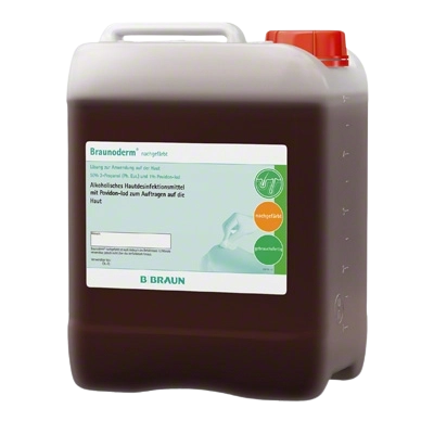 Braunoderm® nachgefärbt ist ein alkoholisches Hautdesinfektionsmittel zur Desinfektion der Haut vor operativen Eingriffen, Punktionen, Katheterisierungen, Blutentnahmen udn Impfungen.