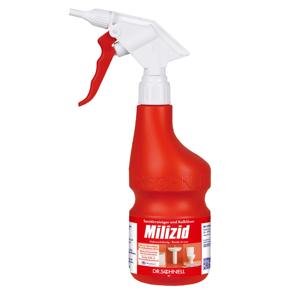 stufenlose Drehregelung, rote Flasche mit MILIZID Label