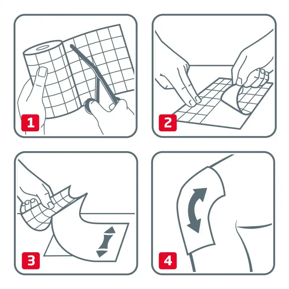 - zur vollflächigen Fixierung von Wundauflagen, insbesondere an Gelenken, bewegten und konturierten Körperpartien