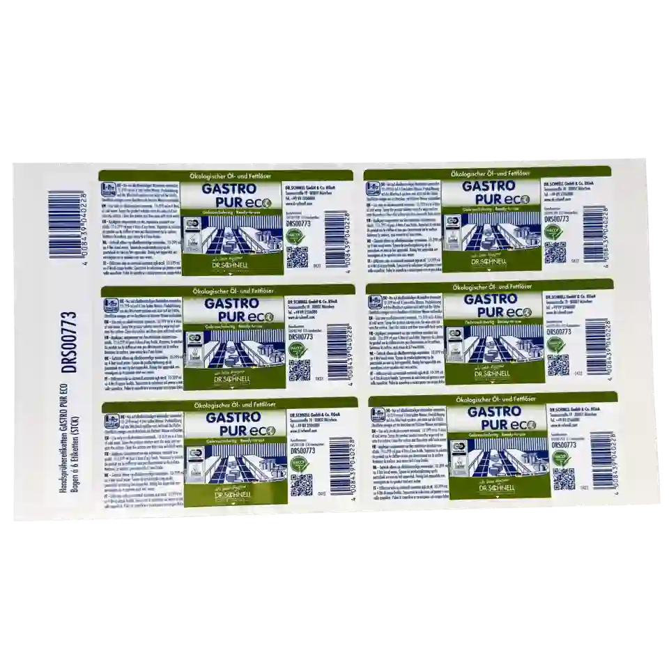 Selbstklebende GASTRO PUR ECO Handsprüher Etiketten, die zum eigenständigen Um- und Neuetikettieren der Handsprüher verwendet werden können.