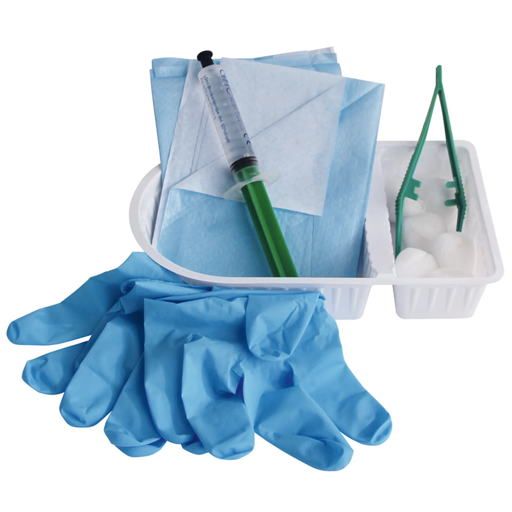 Das Basis Katheter-Legeset ist in eine innere und eine äußere sterile Verpackung unterteilt. Es enthält alle notwendigen Komponenten für das sterile Legen oder den Wechsel eines transurethralen Katheters. Die innere Verpackung beinhaltet eine Nierenschale, zwei Unterlagen, ein Schlitztuch, sechs Tupfer, eine Pinzette, eine Blockerspritze mit zehnprozentiger Glycerinlösung sowie drei nitrilhandschuhe. In der äußeren Verpackung ist eine sterile 10 ml Spritze zum Entblocken des liegenden Katheters enthalten.