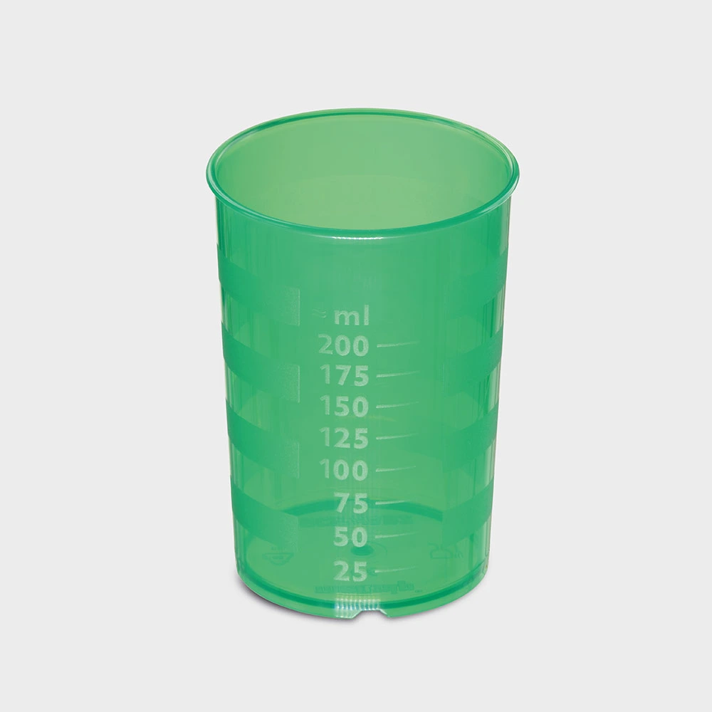 Füllstriche im Abstand von 25 ml - runde Becherform 73 mm x Höhe 100 mm - hochwertiger und robuster Kunststoff - stapelbar - mikrowellengeeignet - spülmaschinengeeignet bis 93 C