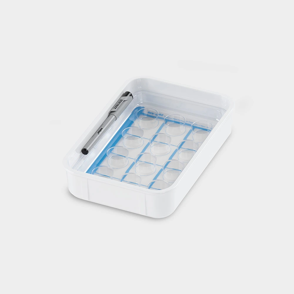 mit Tablett-Einsatz für 12 Becher Tabletten oder Tropfen mit Beschriftungsfolie und Folienstift Abmessungen: L 253 x B 176 x H 55 mm