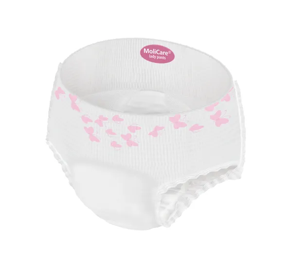 • Anatomisch geformte Einweghosen in femininem Design für Schutz und Sicherheit bei mittlerer Blasenschwäche.