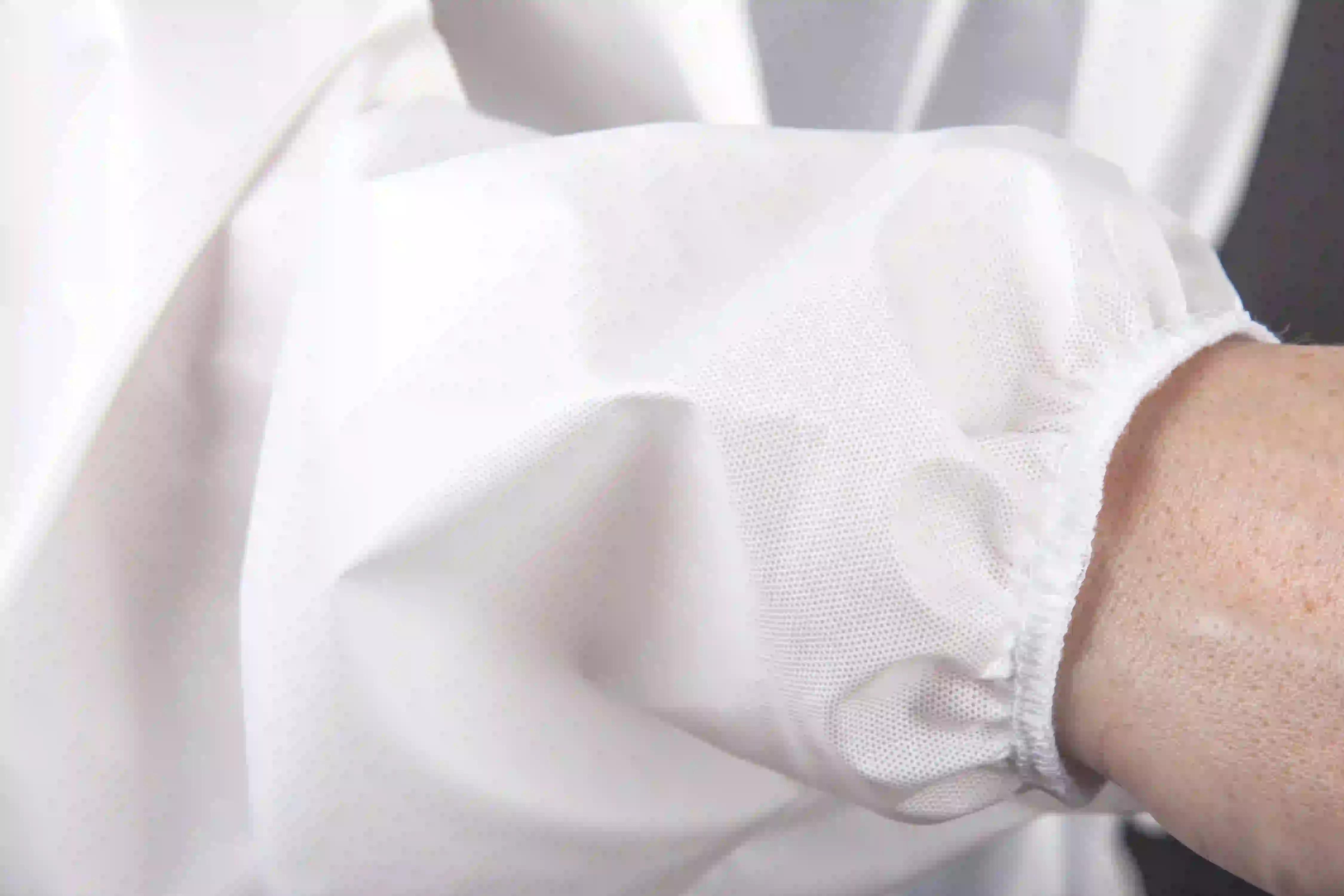 Extrem leichte , elastische PES-Strickware, wasserdicht,bakterien- und virendicht, hydrolysebeständig, dampfsterilisierbar, beständiggegen Blut, Urin, Kote, Fette und Öle. Ca. 200 mal waschbar bei niedriger mechanischerBeanspruchung. Wischdesinfizierbar und waschbar mit allen gängigen RKI u. VAHempfohlenen Flächendesinfektionsmittel und Desinfektionswaschmittel.