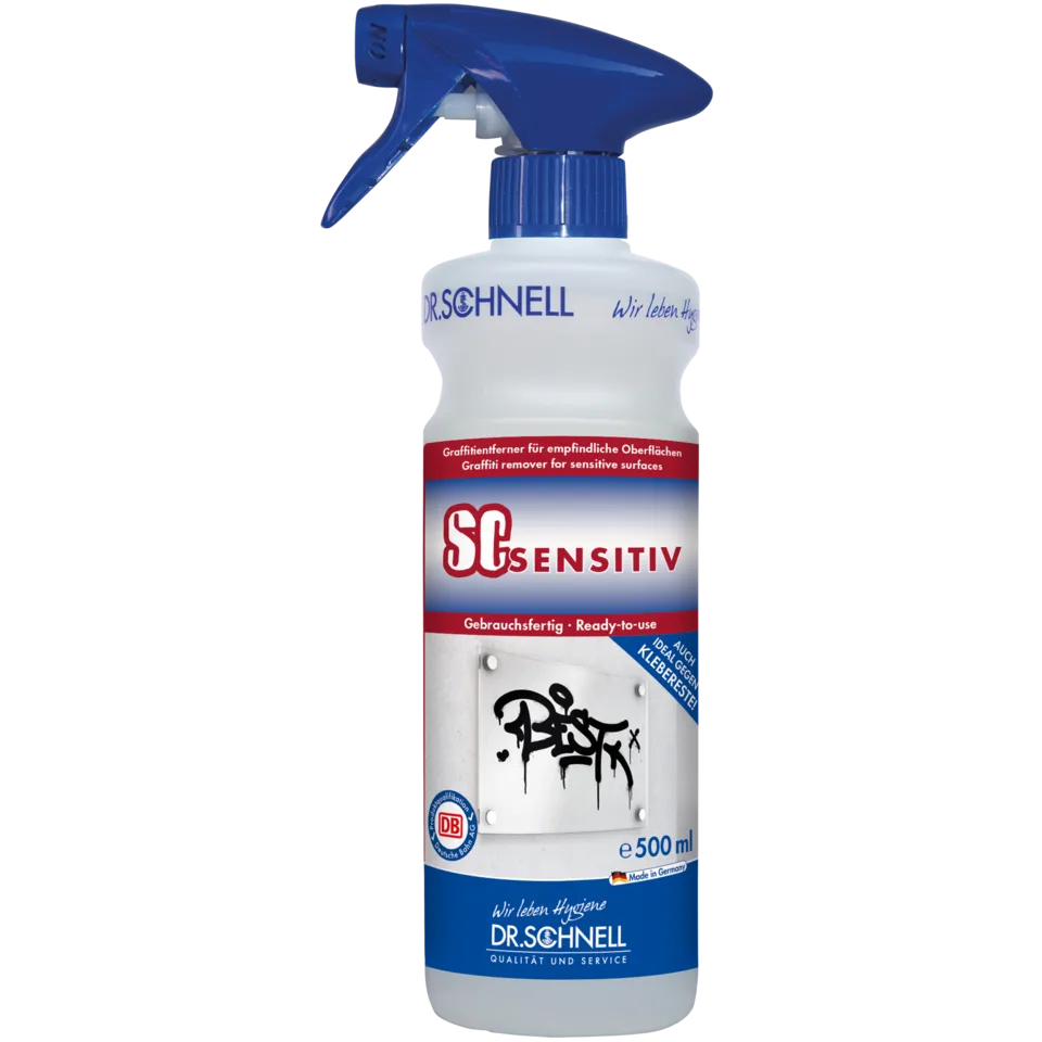 SC SENSITIV auf Tuch gleichmäßig aufsprühen und zu reinigende Flächen bearbeiten._x000D_ Löseprozess überwachen und angelöste Farbe mit einem kratzfreien Tuch aufnehmen und abwischen. Bei Bedarf Vorgang wiederholen._x000D_ Bei der Anwendung von SC SENSITIV speziell auf Plexiglas NICHT mit Wasser nachwischen, nur mit einem kratzfreien Tuch oder Papier aufnehmen. Nach der Anwendung von SC SENSITIV ist kein Nachwischen mit Wasser oder eine Neutralisation der Oberfläche notwendig. Das Produkt verdunstet restlos._x000D_