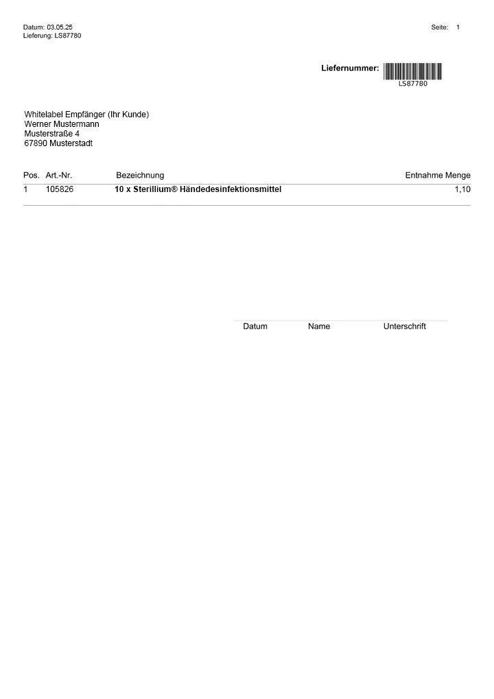Versand mit Ihrem Lieferschein: Wir legen ausschließlich Ihre Dokumente bei