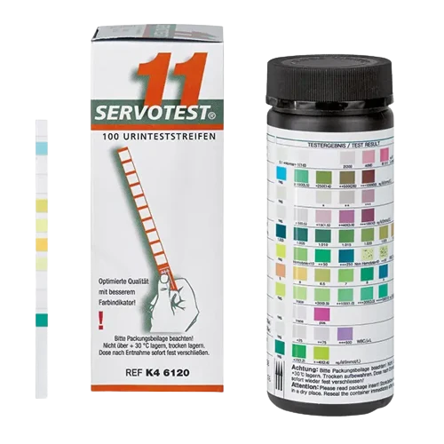 Hier bekommen Sie die wichtigsten Teststreifen in bester Qualität, mit langem Verfallsdatum und klarer Ableseskala. Die Typen SERVOTEST 5 bis 11 (ausgenommen 10SG+ und C) sind mit dem SERVOTEST Reader auswertbar.