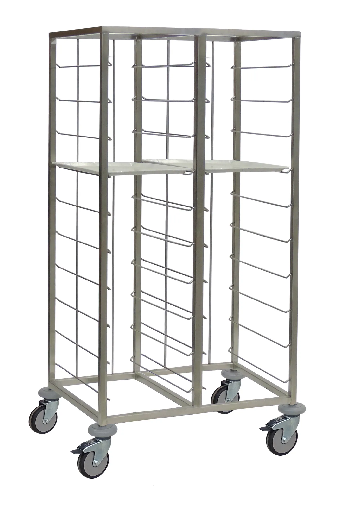 Produktinformationen "Tablettwagen aus Edelstahl - 2-reihig, 20 Tabletts"