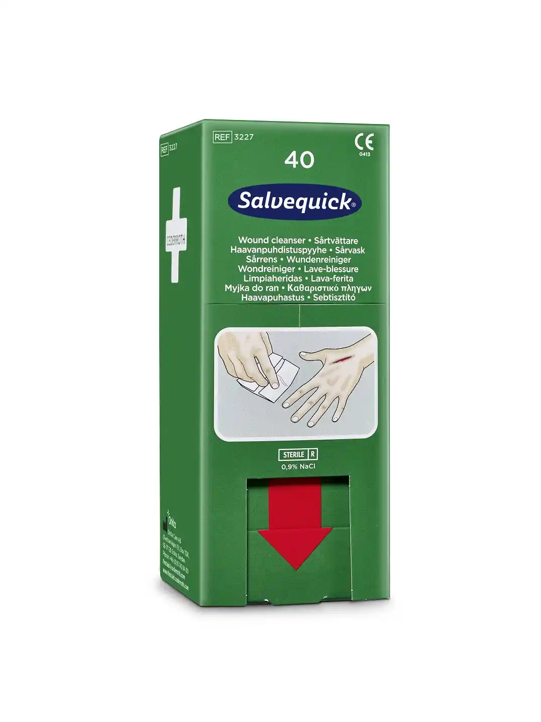 40 x Salvequick Wundreiniger 11 x 12 cm (Sterile physiologische Kochsalzlösung), 10 Boxen in einem Masterkarton